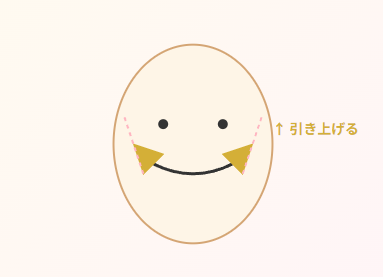 - 上の歯だけが見えるように、口角を斜め上45度に引き上げる