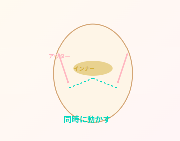 インナーマッスルとアウターマッスルを同時に動かすことで、より効率的に筋肉のバランスを整えます。
